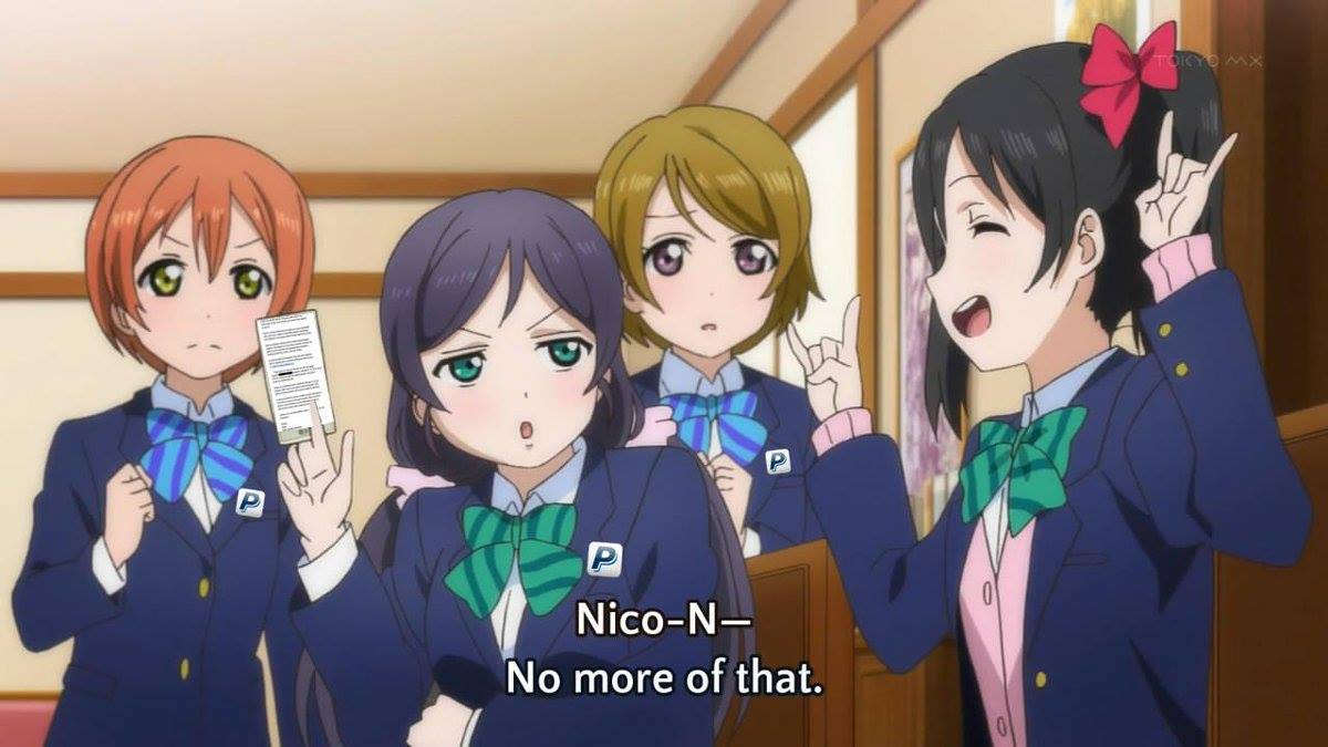 Much to both of our surprise, you can't say "Nico Nico Nii~" on PayPal because Nico isn't just a pesky school idol's name. It's also an acronym for Naftiran Intertrade Company Ltd., an Iranian oil company. Since the US has sanctions against Iran, trying to send funds to a potential Iranian entity is a serious Federal offense. As such, PayPal is required to report any transactions which may violate these sanctions or face charges for being complicit in violating them. This has become a common problem among the weeb community, but that also means that if you just reveal your power level bad taste in anime to PayPal, they'll let you off the hook.